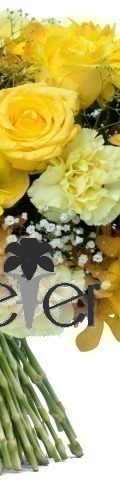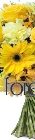 6 Yellow Gerbera, 8 cream carnations, 3 yellow roses